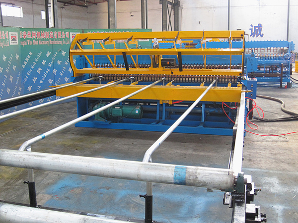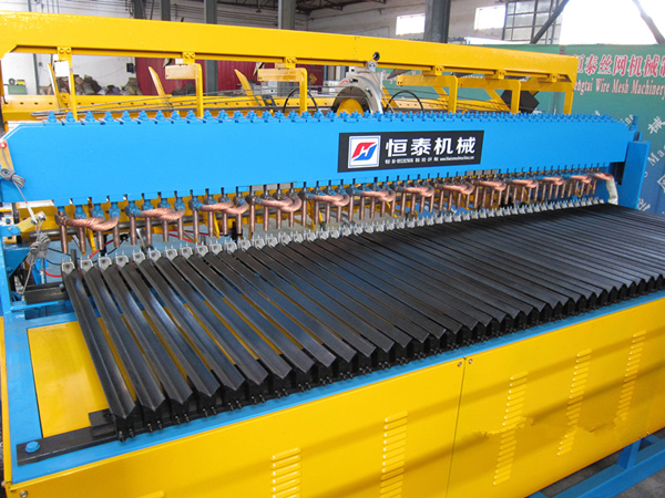 钢筋网排焊机采用加厚钢板与型钢焊接而成,使整机更加稳定。该机采用同步控制技术,分控焊接与焊接时间均由数字编程系统控制,输入面板为触摸屏或按键两种,操作更加智能化、并且具有一次压紧,分次焊接的特点,焊接动力为电动,采用步进电机料斗,制动电机驱动小车送丝,步进电机驱动小车拉网。经丝与纬丝均由校直机校直切断,竖丝人工摆放,横丝自动落丝。